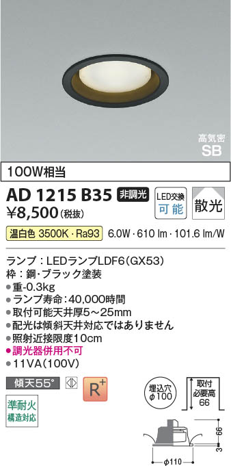 Koizumi ¥³¥¤¥º¥ß¾ÈÌÀ LED¹âµ¤Ì©SB¥À¥¦¥ó¥é¥¤¥È AD1215B35
