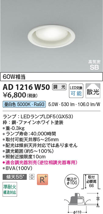 Koizumi ¥³¥¤¥º¥ß¾ÈÌÀ LED¹âµ¤Ì©SB¥À¥¦¥ó¥é¥¤¥È AD1216W50