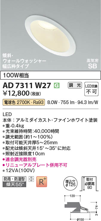 Koizumi ¥³¥¤¥º¥ß¾ÈÌÀ LED¹âµ¤Ì©SB¥À¥¦¥ó¥é¥¤¥È AD7311W27