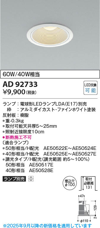 Koizumi ¥³¥¤¥º¥ß¾ÈÌÀ LED¥À¥¦¥ó¥é¥¤¥È AD92733