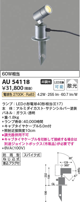Koizumi ¥³¥¤¥º¥ß¾ÈÌÀ LED¥¨¥¯¥¹¥Æ¥ê¥¢¥¹¥Ñ¥¤¥¯¥¹¥Ý¥Ã¥È AU54118