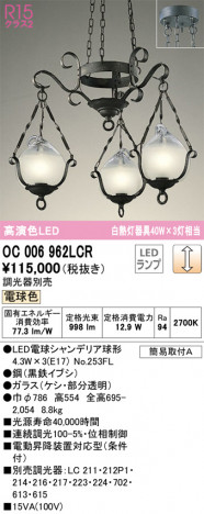 ODELIC ¥ª¡¼¥Ç¥ê¥Ã¥¯ ¥·¥ã¥ó¥Ç¥ê¥¢ OC006962LCR