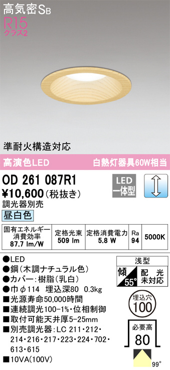 ODELIC ¥ª¡¼¥Ç¥ê¥Ã¥¯ ¥À¥¦¥ó¥é¥¤¥È OD261087R1