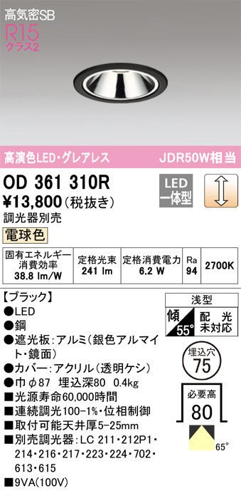 ODELIC ¥ª¡¼¥Ç¥ê¥Ã¥¯ ¥À¥¦¥ó¥é¥¤¥È OD361310R