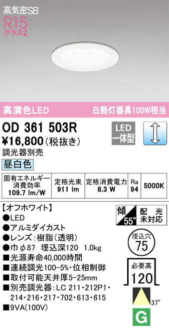 ODELIC ¥ª¡¼¥Ç¥ê¥Ã¥¯ ¥À¥¦¥ó¥é¥¤¥È OD361503R