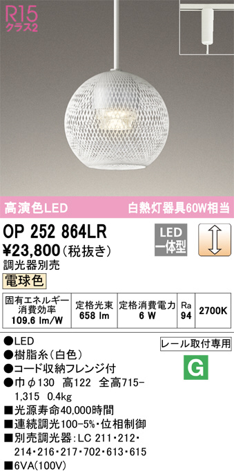 ODELIC ¥ª¡¼¥Ç¥ê¥Ã¥¯ ¥Ú¥ó¥À¥ó¥È¥é¥¤¥È OP252864LR