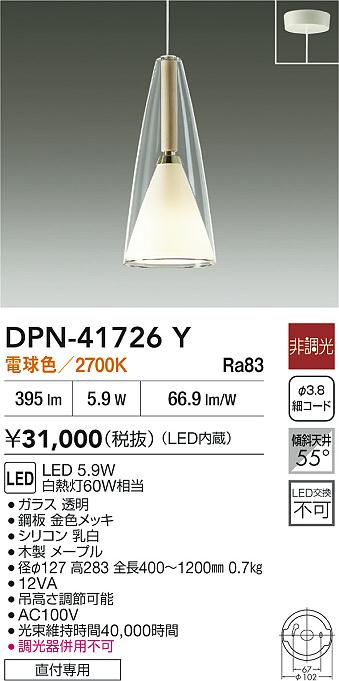 DAIKO Âç¸÷Åŵ¡ ¾®·¿¥Ú¥ó¥À¥ó¥È DPN-41726Y