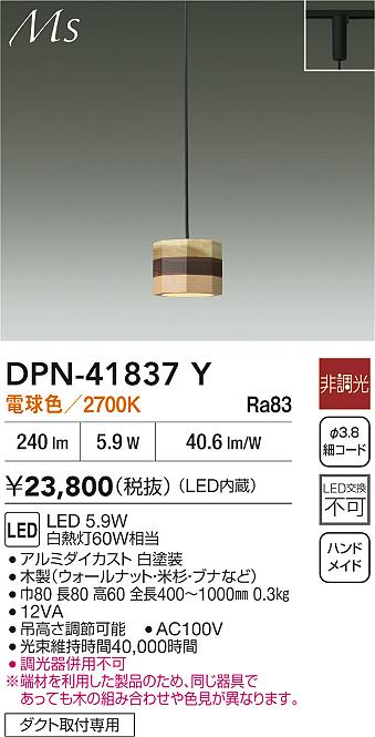 DAIKO Âç¸÷Åŵ¡ ¾®·¿¥Ú¥ó¥À¥ó¥È DPN-41837Y