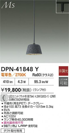 DAIKO Âç¸÷Åŵ¡ ¾®·¿¥Ú¥ó¥À¥ó¥È DPN-41848Y