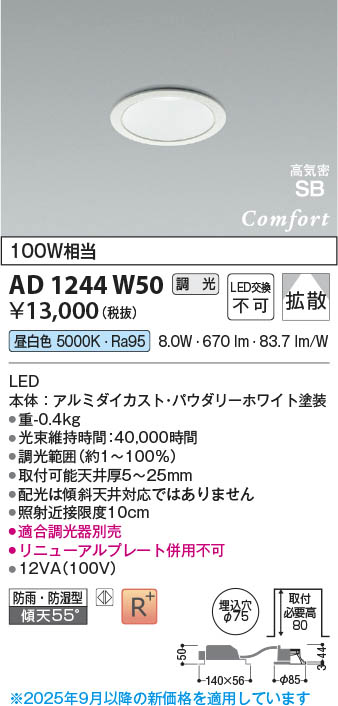 Koizumi ¥³¥¤¥º¥ß¾ÈÌÀ LED¹âµ¤Ì©SB¥À¥¦¥ó¥é¥¤¥È AD1244W50
