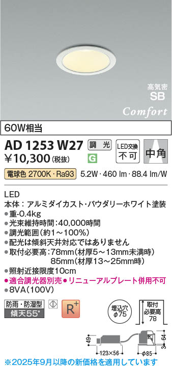 Koizumi ¥³¥¤¥º¥ß¾ÈÌÀ LED¹âµ¤Ì©SB¥À¥¦¥ó¥é¥¤¥È AD1253W27