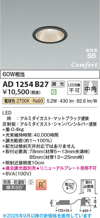 Koizumi ¥³¥¤¥º¥ß¾ÈÌÀ LED¹âµ¤Ì©SB¥À¥¦¥ó¥é¥¤¥È AD1254B27