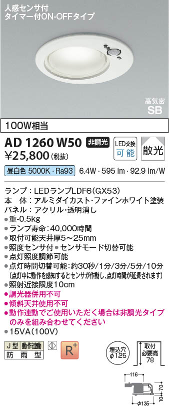 Koizumi ¥³¥¤¥º¥ß¾ÈÌÀ LED¹âµ¤Ì©SB¥À¥¦¥ó¥é¥¤¥È AD1260W50