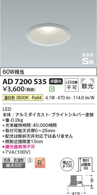 Koizumi ¥³¥¤¥º¥ß¾ÈÌÀ ¹âµ¤Ì©SB¥À¥¦¥ó¥é¥¤¥È AD7200S35