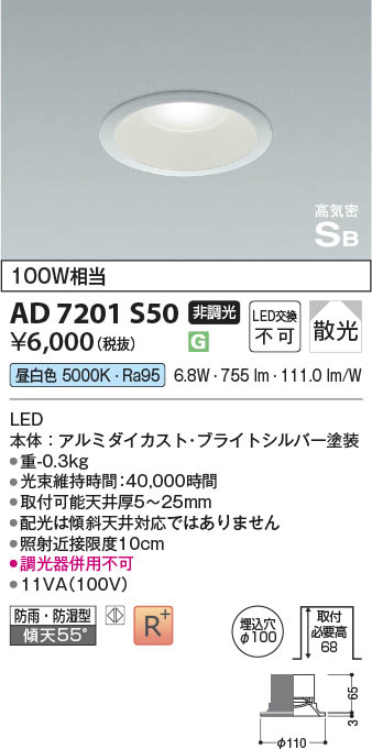 Koizumi ¥³¥¤¥º¥ß¾ÈÌÀ ¹âµ¤Ì©SB¥À¥¦¥ó¥é¥¤¥È AD7201S50