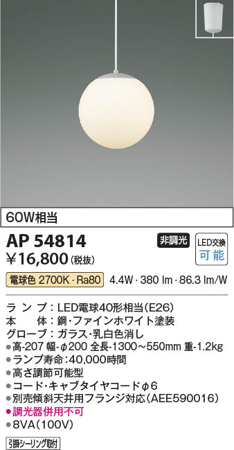 Koizumi ¥³¥¤¥º¥ß¾ÈÌÀ LED¥Ú¥ó¥À¥ó¥È AP54814