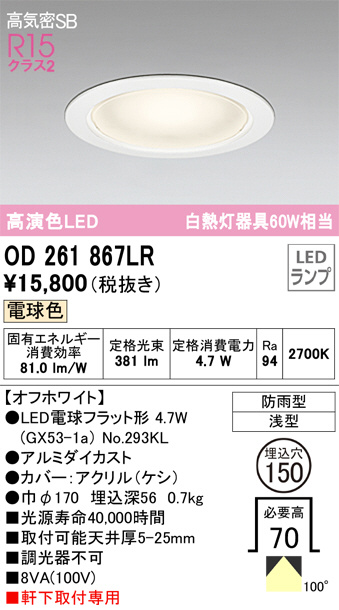 ODELIC ¥ª¡¼¥Ç¥ê¥Ã¥¯ ¥¨¥¯¥¹¥Æ¥ê¥¢¥é¥¤¥È OD261867LR