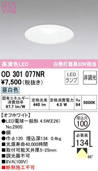 ODELIC ¥ª¡¼¥Ç¥ê¥Ã¥¯ ¥À¥¦¥ó¥é¥¤¥È OD301077NR