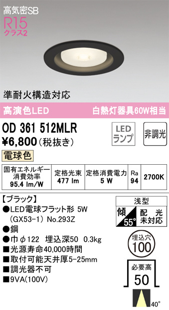 ODELIC ¥ª¡¼¥Ç¥ê¥Ã¥¯ ¥À¥¦¥ó¥é¥¤¥È OD361512MLR