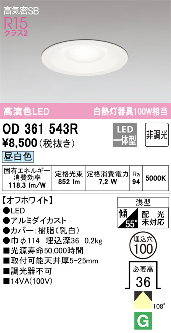ODELIC ¥ª¡¼¥Ç¥ê¥Ã¥¯ ¥À¥¦¥ó¥é¥¤¥È OD361543R