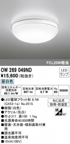 ODELIC ¥ª¡¼¥Ç¥ê¥Ã¥¯ ¥Ð¥¹¥ë¡¼¥à¥é¥¤¥È OW269049ND