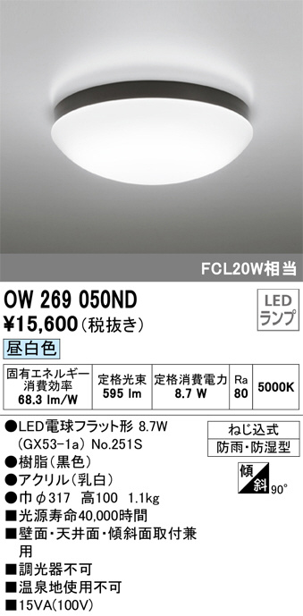ODELIC ¥ª¡¼¥Ç¥ê¥Ã¥¯ ¥Ð¥¹¥ë¡¼¥à¥é¥¤¥È OW269050ND