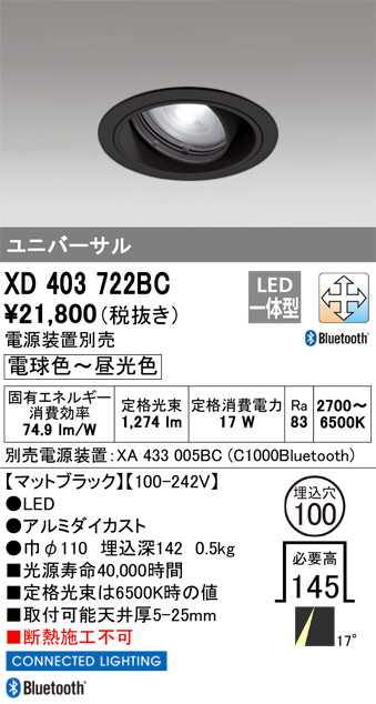 ODELIC ¥ª¡¼¥Ç¥ê¥Ã¥¯ ¥À¥¦¥ó¥é¥¤¥È XD403722BC