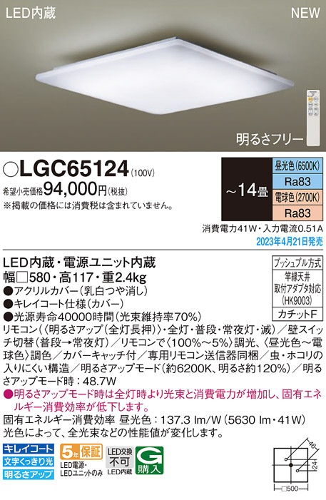 Panasonic ¥·¡¼¥ê¥ó¥°¥é¥¤¥È LGC65124