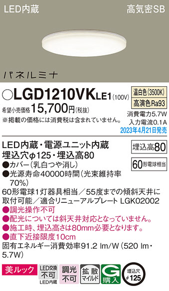 Panasonic ¥À¥¦¥ó¥é¥¤¥È LGD1210VKLE1
