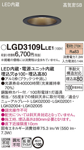 Panasonic ¥À¥¦¥ó¥é¥¤¥È LGD3109LLE1