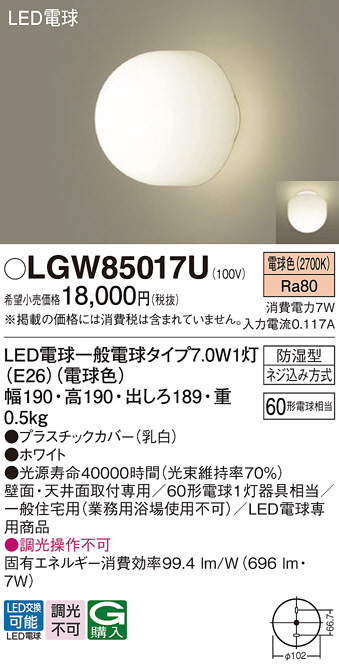 Panasonic ¥¨¥¯¥¹¥Æ¥ê¥¢¥é¥¤¥È LGW85017U