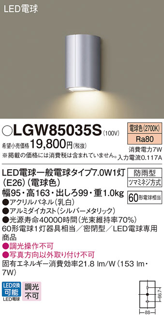 Panasonic ¥¨¥¯¥¹¥Æ¥ê¥¢¥é¥¤¥È LGW85035S