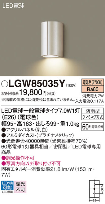 Panasonic ¥¨¥¯¥¹¥Æ¥ê¥¢¥é¥¤¥È LGW85035Y