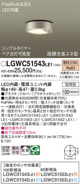 Panasonic ¥¨¥¯¥¹¥Æ¥ê¥¢¥é¥¤¥È LGWC51543LE1