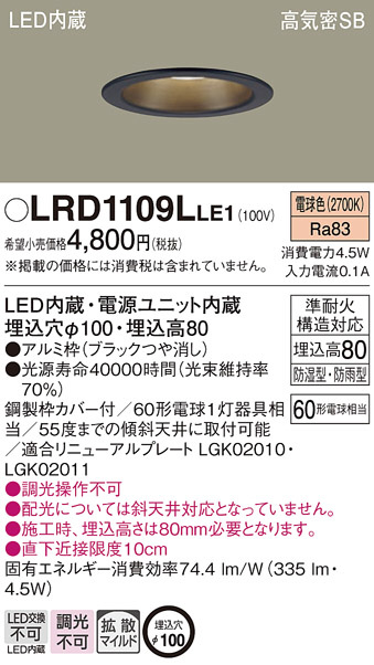 Panasonic ¥¨¥¯¥¹¥Æ¥ê¥¢¥À¥¦¥ó¥é¥¤¥È LRD1109LLE1