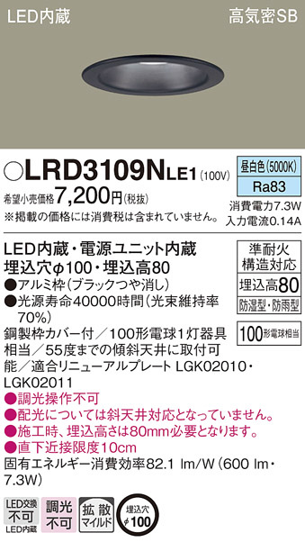 Panasonic ¥¨¥¯¥¹¥Æ¥ê¥¢¥À¥¦¥ó¥é¥¤¥È LRD3109NLE1