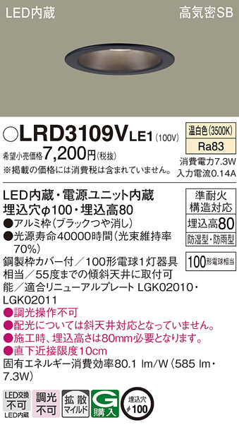 Panasonic ¥¨¥¯¥¹¥Æ¥ê¥¢¥À¥¦¥ó¥é¥¤¥È LRD3109VLE1
