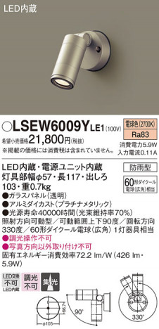 Panasonic ¥¨¥¯¥¹¥Æ¥ê¥¢¥¹¥Ý¥Ã¥È¥é¥¤¥È LSEW6009YLE1