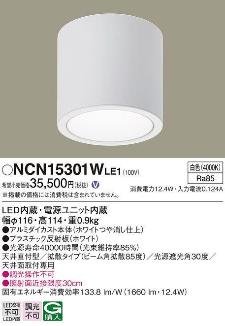 Panasonic ¥·¡¼¥ê¥ó¥°¥é¥¤¥È NCN15301WLE1