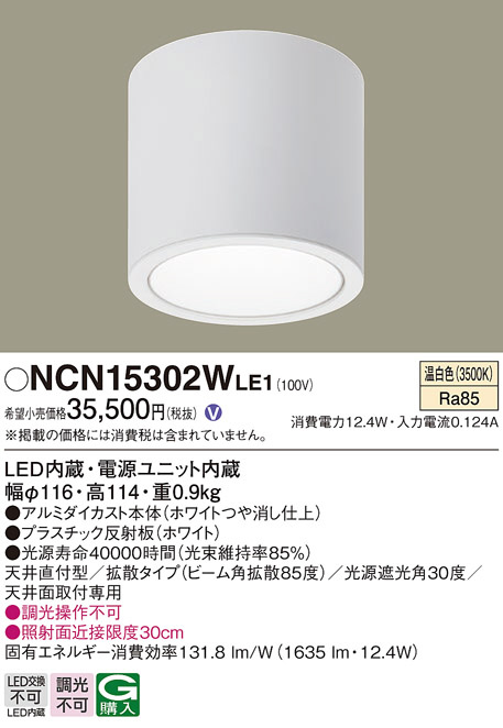 Panasonic ¥·¡¼¥ê¥ó¥°¥é¥¤¥È NCN15302WLE1