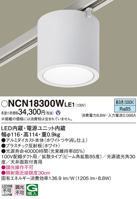 Panasonic ¥·¡¼¥ê¥ó¥°¥é¥¤¥È NCN18300WLE1