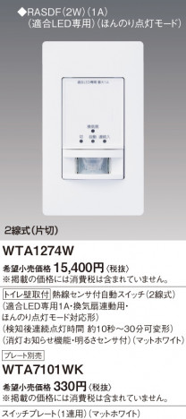 Panasonic ¥¢¥É¥Ð¥ó¥¹£ÓÊɼèÉÕÇ®Àþ¥»¥ó¥µÉÕ¼«Æ°¡¡£Ó£×£²Àþ¼°¥Þ¥Ã¥È¥Û¥ï¥¤¥È WTA1274W