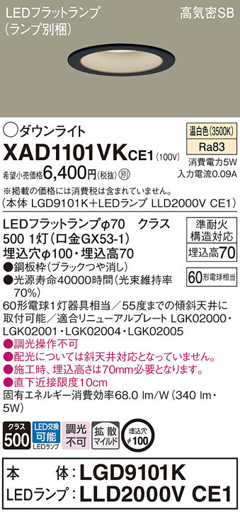 Panasonic ¥À¥¦¥ó¥é¥¤¥È XAD1101VKCE1