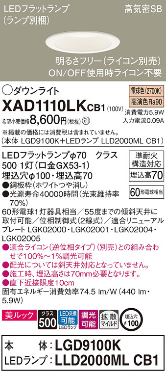 Panasonic ¥À¥¦¥ó¥é¥¤¥È XAD1110LKCB1