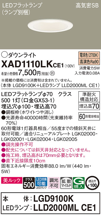 Panasonic ¥À¥¦¥ó¥é¥¤¥È XAD1110LKCE1