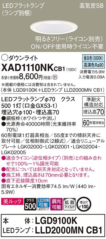 Panasonic ¥À¥¦¥ó¥é¥¤¥È XAD1110NKCB1