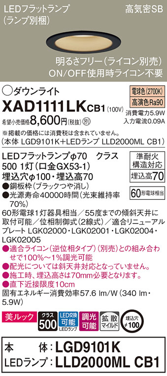 Panasonic ¥À¥¦¥ó¥é¥¤¥È XAD1111LKCB1