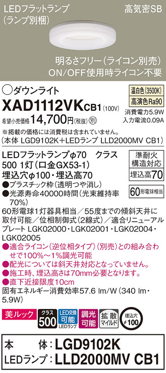 Panasonic ¥À¥¦¥ó¥é¥¤¥È XAD1112VKCB1