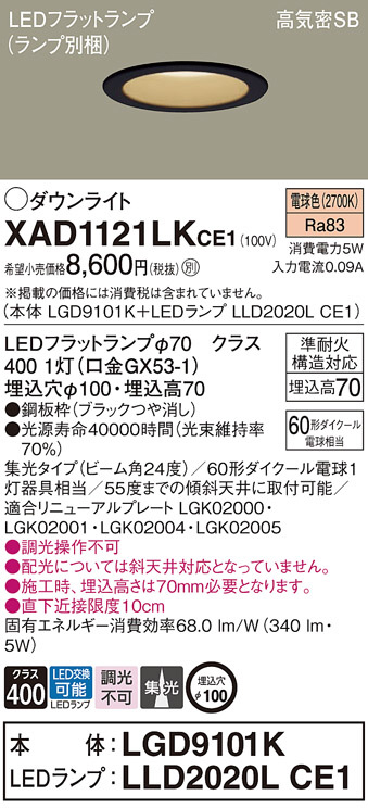 Panasonic ¥À¥¦¥ó¥é¥¤¥È XAD1121LKCE1