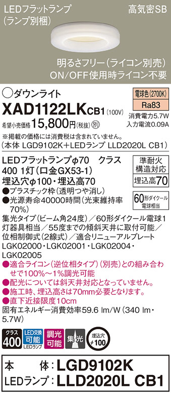 Panasonic ¥À¥¦¥ó¥é¥¤¥È XAD1122LKCB1